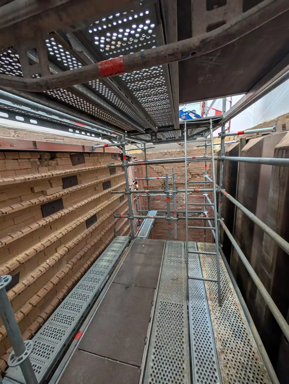 Les travaux ont nécessité à la fois la dépose des briques et le retrait des isolants amiantés, avec la mise en place de protocoles stricts pour garantir la sécurité des intervenants et la maîtrise des risques liés à l’amiante.